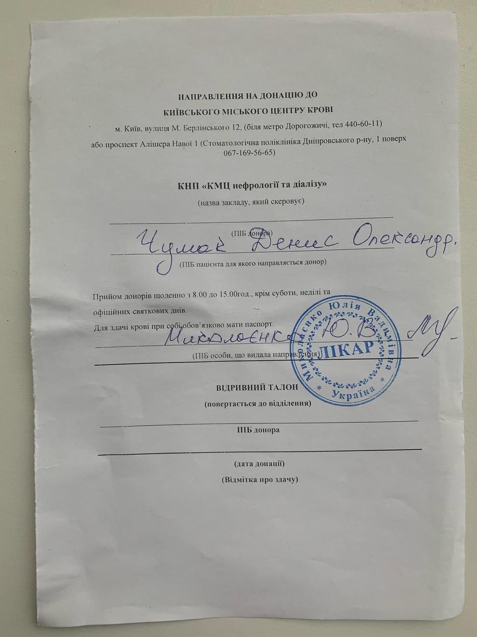 Шановні колеги та шанувальники київського футзалу! Нашому другу та колезі Денису Чумаку потрібна допомога, він у реанімації, втратив багато крові, потрібно здати для нього кров!